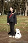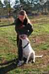 Я с ответственностью подошла к должности владельца собаки, прочитала много Pin-Up посмотрела не мало фильмов. Но признаюсь, не всё было идеально. Я на собственном опыте убедилась в том, что быть хорошим хозяином собаки, правильно заботится о ней и воспитывать - великий труд, и без помощи не обойтись. До встречи с Виктором Мустязой мы с Дельфи повстречали самых разных дрессировщиков, киногов и собачников. Но никто из них не мог решить проблемы, которые были у меня с Дельфи. Она была пугливой, скромной собакой, долго не могла приучиться к туалету на улице, грызла стены в квартире, отказывалась общаться с другими собаками и не подходила ко мне, когда я просила, а столкнувшись с опасностью, бежала домой. С Виктором я совершенно случайно познакомилась в сентябре 2009. В начале мне не были понятны его методы, они были на первый взгляд отличны от того, что писали в книгах, и не внушали доверия. Но ради любопытства я стала наблюдать за работой Виктора, с расстояния смотрела на то, что он делал день за днём. Он постепенно начал демонстрировать мне свои навыки, объяснять что и зачем он делает. Со временем всё для меня стало более логичным, и я попробовала применять методы Виктора на моей собаке. Поразительно, но проблемы, которые у неё существовали, были устранены. Не сразу, конечно, но устранены. Тогда я окончательно убедилась в безупречности и правильности работы Виктора. Мы стали сотрудничать. Он увидел мой потенциал и предложил дальше развиваться в сфере кинологии и дрессировки собак. Я согласилась и с удовольствием втянулась в работу с собаками. Виктор познакомил меня с клубом «Renasterea Naturii», где меня начали обучать экспертизе на выставках собак. Когда Виктор решил, что я готова, я начала заниматься дрессировкой с другими собаками. Так, помимо моей собаки, я выдрессировала и сдала зачёты с 6 собаками. Параллельно с этим я началпа ззаниаться хендлингом, готовить и выставлять собак на выставках (как IKU так и FCI). В прошлом году я подала заявление в клуб с просьбой сдать зачёт, чтобы получить звание инструктора-дрессировщика. По разрешению клуба и Виктора на основе приложенных к заявлению дипломов о сдаче в марте 2012 года я успешно сдала зачёт. Я продолжила работать под руководством Виктора. Я очень люблю то, что делаю. В работе с собаками всегда стараюсь сохранять позитивный настрой, заканчивать занятие на высокой ноте и в конечном итоге заставить собаку работать с удовольствием. Для всего этого мне помогает простой принцип, которому меня научил Виктор - уважение к собаке. Мне также нравиться обучать хозяев, объяснять, почему нужно делать так, а не по-другому. Часто это очень сложно, заставляет понервничать, но результат того стоит.